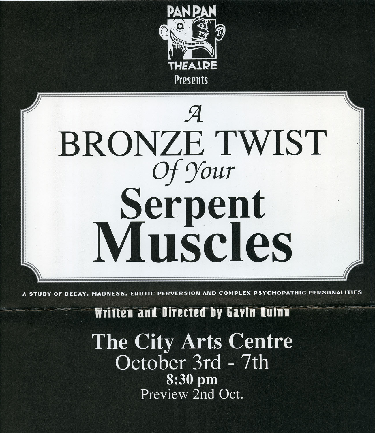 Programme cover from Pan Pan Theatre production of A Bronze Twist of Your Serpent Muscles