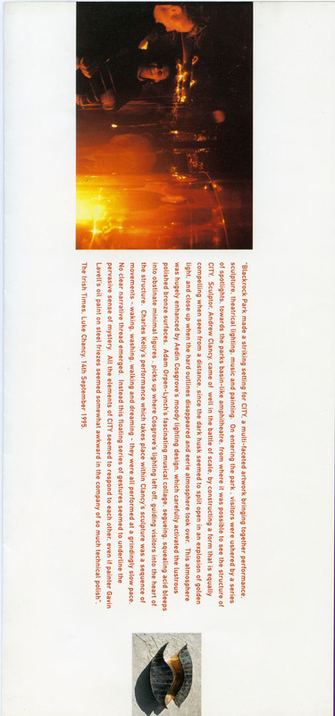 Printed programme from CITY - A multi-media performance piece exploring the relationship of music, performance and art through the theme of the City, devised by the Pan Pan Company.