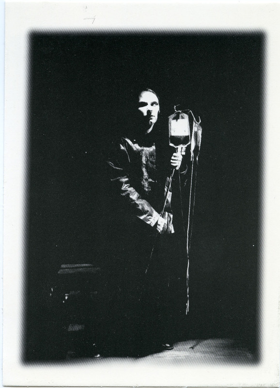Black-and-white printed postcard for Tailors Requiem by Pan Pan Theatre Company