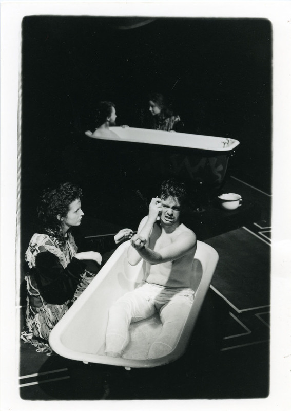 Black-and-white photograph of Carmel Flanaghan and Senan Dunne in Pan Pan Theatre Company's The Crystal Spider