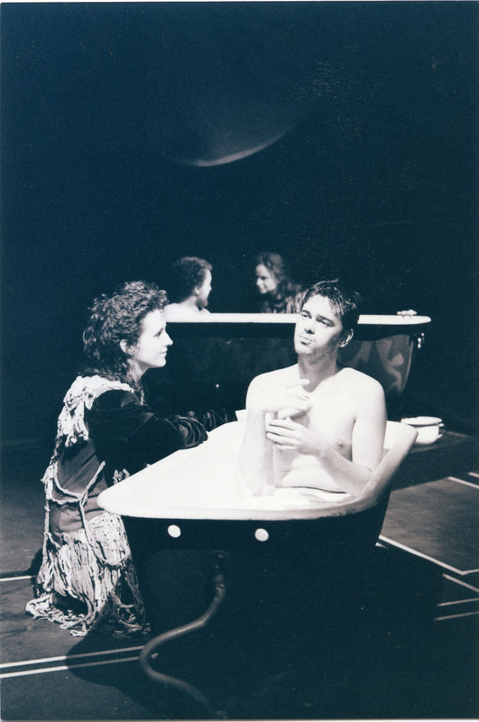 Black-and-white photograph of Carmel Flanaghan and Senan Dunne in Pan Pan Theatre Company's The Crystal Spider