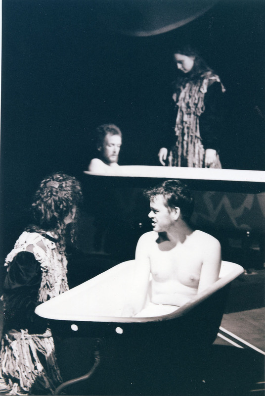 Black-and-white photograph of Carmel Flanaghan and Senan Dunne in Pan Pan Theatre Company's The Crystal Spider