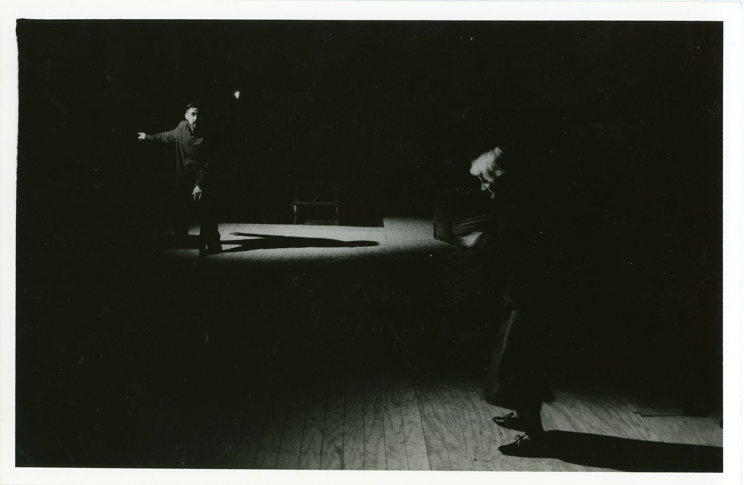 Black-and-white photograph of two actors in The Man With Two Kisses by Pan Pan Theatre Company