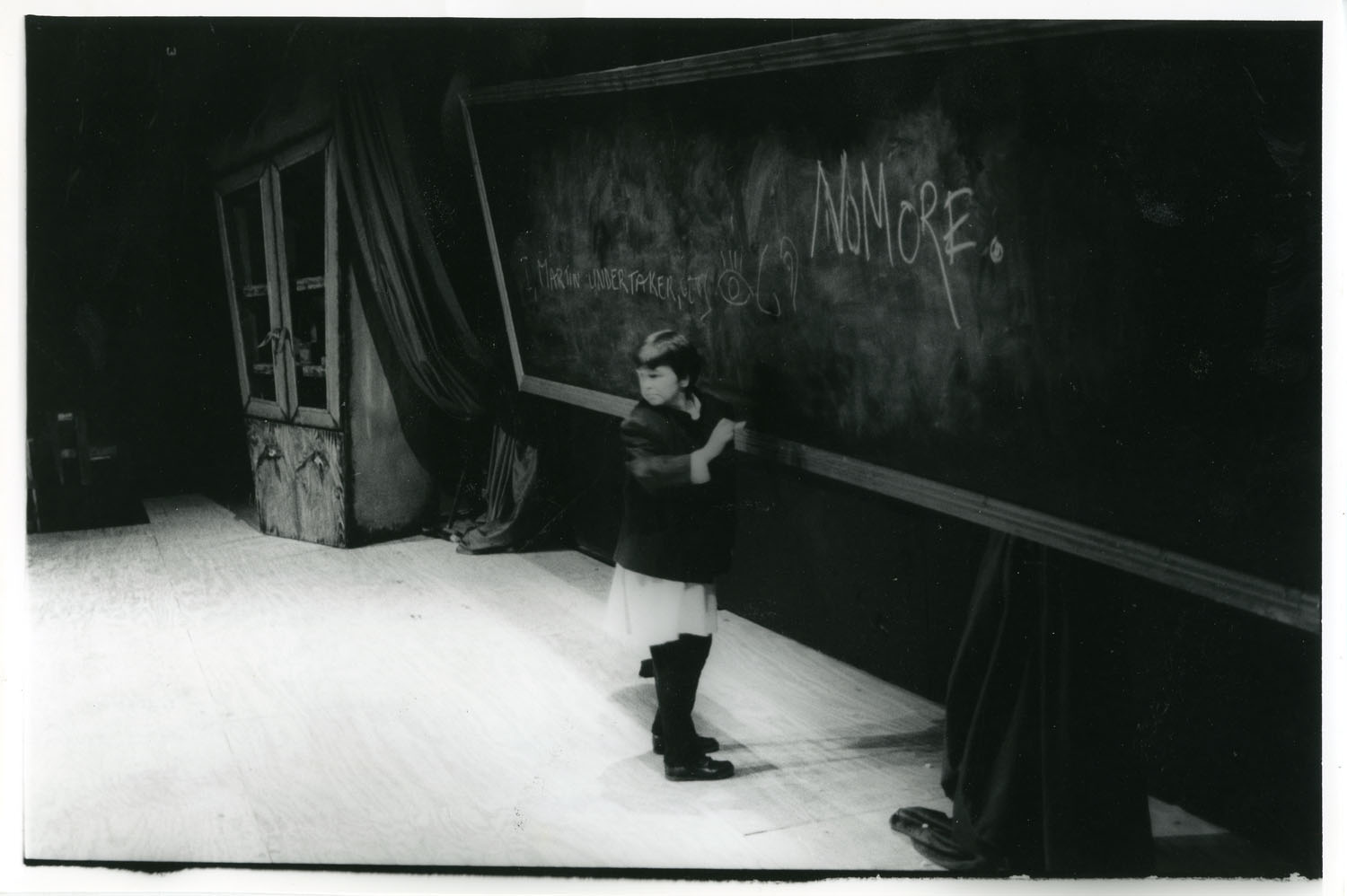 Black-and-white photograph of a young actor in Martin Assassin of his Wife by Pan Pan Theatre Company