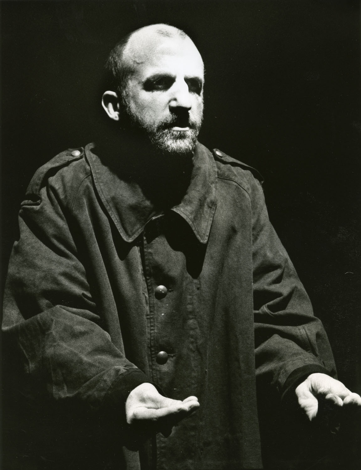 Black-and-white close-up photograph of Charles Kelly in The Man With Two Kisses by Pan Pan Theatre Company
