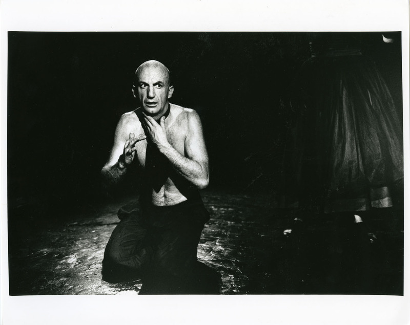 Black-and-white photograph of Charles Kelly in A Bronze Twist of your Serpent Muscles by Pan Pan Theatre Company