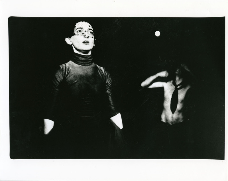 Black-and-white photograph of two actors in A Bronze Twist of your Serpent Muscles by Pan Pan Theatre Company