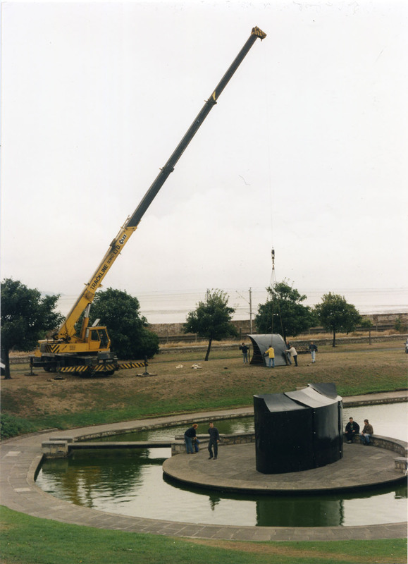 Colour photograph of the construction of the venue for CITY by Pan Pan Theatre Company at Blackrock Park