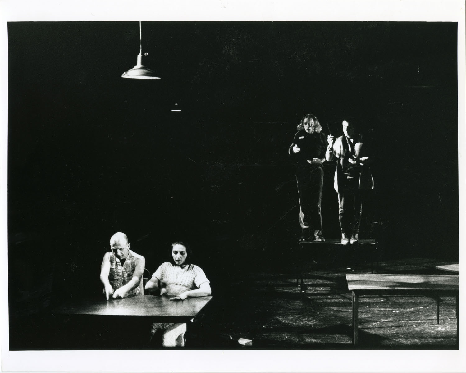 Black-and-white photograph of Charles Kelly and Patrizia Barbaggallo in Tailors Requiem by Pan Pan Theatre Company