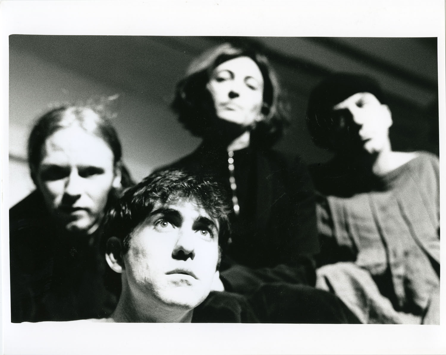 Black-and-white photograph of part of the cast of Tailors Requiem by Pan Pan Theatre Company