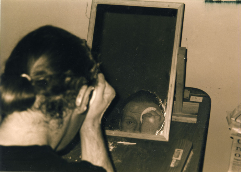Sepia backstage photograph of a performance of Tailors Requiem by Pan Pan Theatre Company