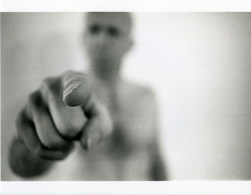 Black-and-white promotional photograph of Charles Kelly for Cartoon by Pan Pan Theatre Company