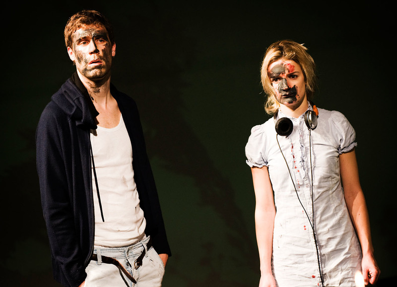 Colour photograph from The Crumb Trail by Gina Moxley and from production at Project Arts Centre Dublin by Pan Pan Theatre Company.