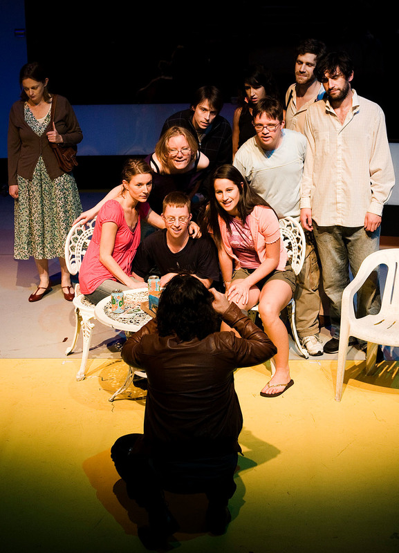 Colour photograph from The Idiots by Lars von Trier and from production at Project Arts Centre Dublin by Pan Pan Theatre Company as part of Dublin Theatre Festival.