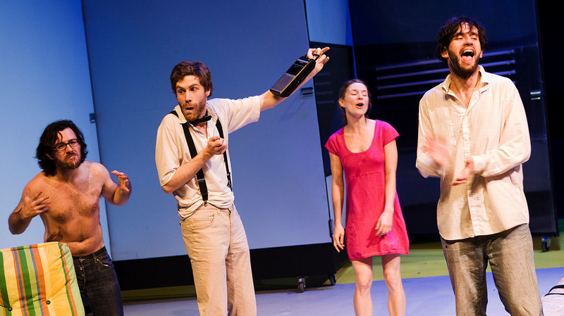 Colour photograph from The Idiots by Lars von Trier and from production at Project Arts Centre Dublin by Pan Pan Theatre Company as part of Dublin Theatre Festival.