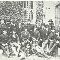 QCG College Sports Day Stewards, c. 1872 Stewards of the College Sports Day in Queen's College, Galway about 1872 in the Quadrangle outside the Chemistry laboratory - later the location of the Applied Geophysics Unit