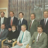 Léacht Bhord na Gaeilge, 1988 - Máire Geoghegan-Quinn Seo Máire Geoghegan-Quinn sa Choláiste le Léacht bhliantúil Bhord na Gaeilge a thabhairt i 1988. Ba Aire Stáit í i Roinn an Taoisigh ag an am. Léi sa ghrianghraf ar barr tá Uachtarán an Choláiste agus an tOllamh le Nua-Ghaeilge. Léi sa ghrianghraf ag bun tá Uachtarán an Choláiste agus an tOllamh le Geilleagar.