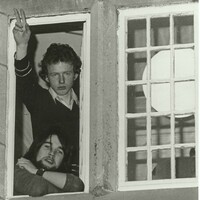 Student Occupation of President's Office, 1982 These are two of the students involved in an occupation of the President's Office on the second floor of the southwest corner of the Quadrangle, part of a group of 13 representing the Students’ Union . The occupation was initially meant to last 24 hours, but was extended from May 12 to May 21 in response to the actions of the college authorities in cutting off student phones, closing the Students' Union Bar, and attempting to cut off the nursery allowance. The occupation was in protest at the proposed increase in fees and cutbacks in essential Student Services. According to the Union's account, 1,000 students marched in support of the occupation on the eve of their examinations, but the increase in fees still went through.
