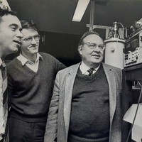 The picture shows (l-r): Frank Imbusch, Tom Glynn and Art Schawlow in the Spectroscopy Laboratory at University College Galway.