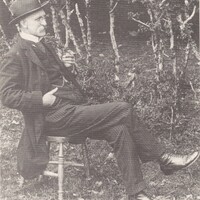 Seaghan Mac Énrí The picture shows Seaghan (Seán) Mac Énrí , dressed smartly, wearing a hat, and sitting on a chair with small sized trees in the background (NUI Galway Staff Book, 2000 – 2001). He was appointed Professor of Opthalmology and Otology and Lecturer in Modern Irish [Ollamh le hOftailmeolaíocht agus Oiteolaíocht, agus Léachtóir le Nua-Ghaeilge] in 1910 (General Calendar, 2005 - 2006). He died in 1930.