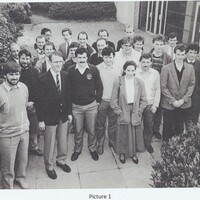 Picture 1 shows a picture of attendees at a Lasers and Applications course on 3-4 April 1989, taken outside the University restaurant. Attendees were from industries in Galway, Clare and Limerick. Dr T.J. Glynn (Dept. of Experimental Physics) is second from left in the front row and Dr G.P. Morgan (Dept. of Experimental Physics) is second from left in the second row.