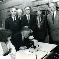 Seated: Unidentified medical student; An Taoiseach Albert Reynolds