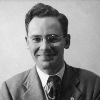 Dr. Diarmuid Ó Cearbhaill as an undergraduate at UCG The subject is depicted in portrait format, and is formally dressed in a jacket and tie, and wearing glasses. His pioneer pin is in evidence on the lapel of his jacket.