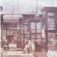 The Library at Queen's College Galway c. 1906 The Library extended along the first floor of the North side of the Quadrangle building and was over 150 feet in length. The Librarian, when a picture of the library was taken in about 1906, was Valentine Steinberger, Professor of Modern Languages (1886 – 1916).
