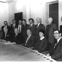 Inaugural meeting of the Discovery Programme Advisory Panel, 10 May 1991 This official photograph was taken at the first meeting of the Advisory Panel assembled by Taoiseach Charles Haughey to define the objectives and initial work plan of the Discovery Programme.