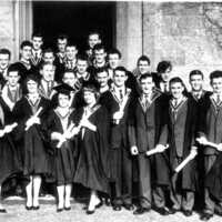 Science graduation, 1961 Among those present in this photograph are members of staff Martin Newell, Tom O'Connor and Breandán Ó Cochlain. Some of the graduates are still to be identified but the others are named in the accompanying key.