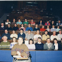 Evening BA class, early 1980s Evening BA class, early 1980s, seated in a lecture theatre with Hubert McDermott