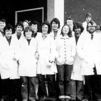 Microbiology class at the Guinness brewery, mid 1970s John Patching records that this photograph was take during an educational tour for Microbiology students some time around the mid 1970s.