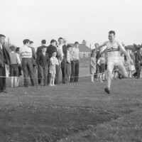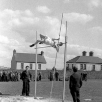 Triple jump, summer 1959 This photograph was taken on Fahy's Field at the 1959 Co. Galway sports meet, in which students and staff of UCG participated.