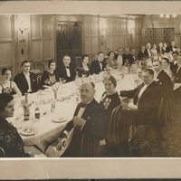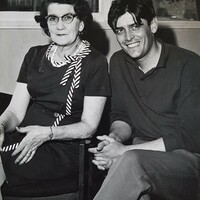 Mrs Anne Creaven ('Ma Creaven') and unidentified male The woman on the left of the photo is Mrs. Anne Creaven, known to all as 'Ma Creaven', who operated the coffee shop on campus. The male seated beside her on the right is unidentified. The venue is a university function, unidentified.