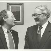John McGahern and President Colm Ó hEocha The author John McGahern chatting with Dr Colm Ó hEocha, President, in the President's quarters in the Quadrangle of UCG.