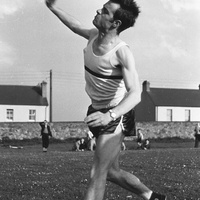 Putting the shot, summer 1959 This photograph was taken at the 1959 Co. Galway Sports Meet, in which students and staff of UCG participated.