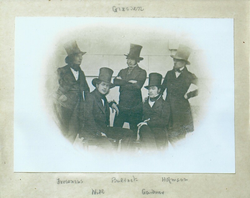 (Left to right) Carl Remegius Fresenius (1818-97), Heinrich Will (1812-90), John Lloyd Bullock (1842-1905), John Gardner (1804-80) and August Wilhelm von Hofmann (1818-92)