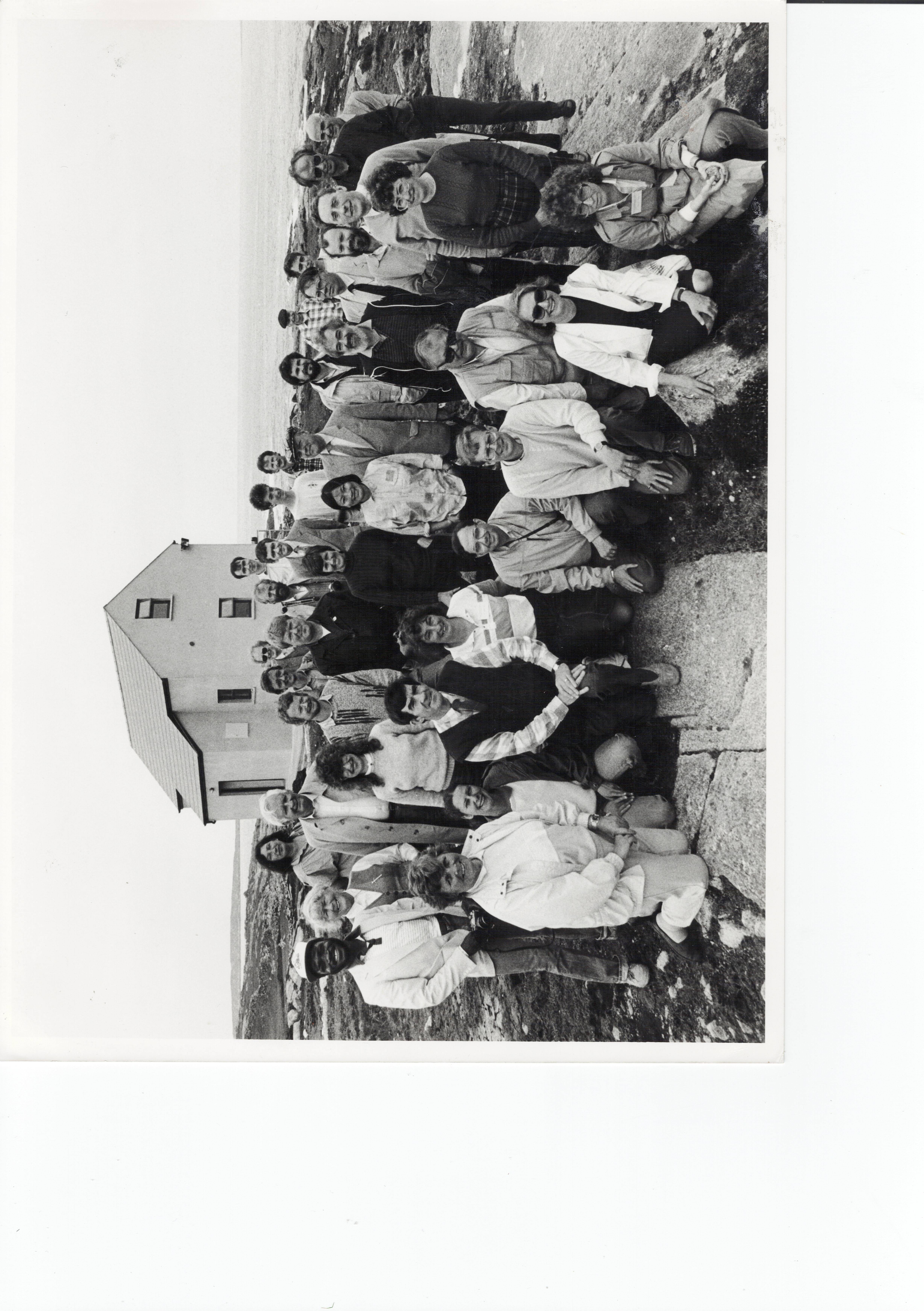 Attendees at the Conference are shown in Picture 1, with names given below. After the Conference, some thirty-six Conference attendees visited the Mace Head Atmospheric Research Station, a picture of whom was taken in front of the Shore Laboratory, and shown in Picture 2 with names given below. Shown in that picture is Mairéad Nic Dhonncha, 2nd from the left in the 4th row, who ably helped in the administration of the Conference. She worked in Oifig na gCuntas (where she used hand out our eagerly awaited scholarship cheques!) and then in the Library, and was a sister of Máire Uí Bhreasail (Brazil), also in Oifig na gCuntas (Private communication: Séamus Mac Mathúna)