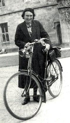 The bicycle shown was, at the time of the photograph (probably the 1930s or the early 1940s), her daily mode of transport from Athenry, where she lived, when, as Christy Townley recalled, the train was not operating, as frequently happened during the Second World War Years; when it was, she used the bicycle between the rail station and the College. She often came to the Library (in the Quadrangle), where he worked, around 7pm to get assistance from him in the delicate task of preparing the carbide lamp, shown in the photograph, for the bicycle for the long, lonely journey on the rough road back to Athenry in winter time.