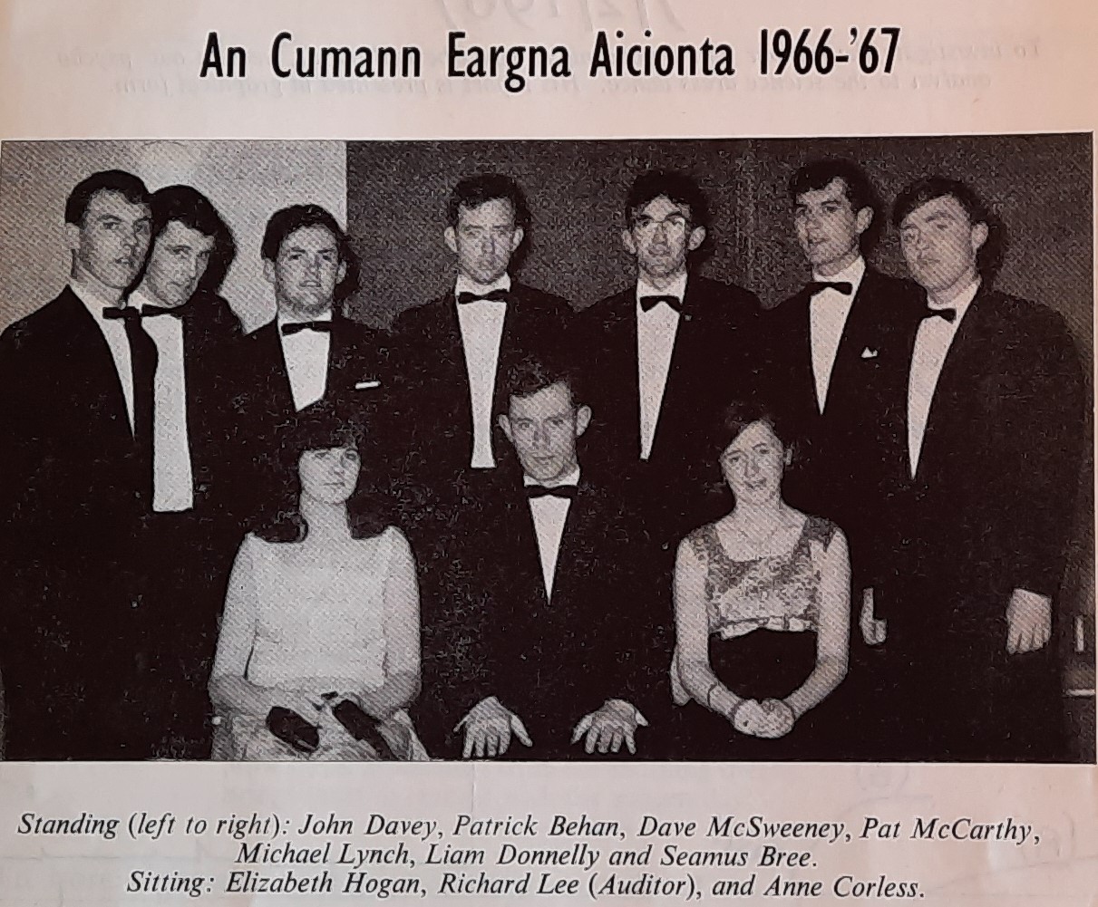 The Science Society later became known as ‘an Cumann Éargna Aicionta’. According to the UCG College Annual of 1957-58), ‘membership of the Science Society is confined to members of the Science Faculty proceeding to a purely scientific degree who pay one shilling subscription before the 1st of December’.