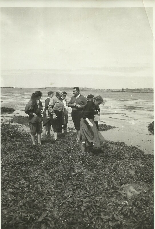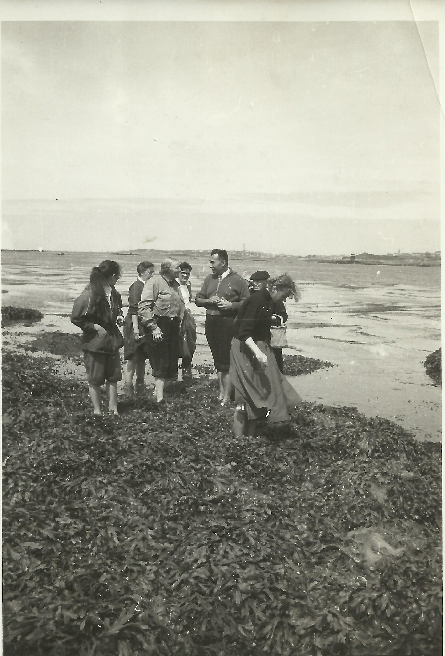 Dr Máirín de Valéra with fellow phycologists viewing and collecting samples of algae from the seashore in Roscoff, Brittany in 1954